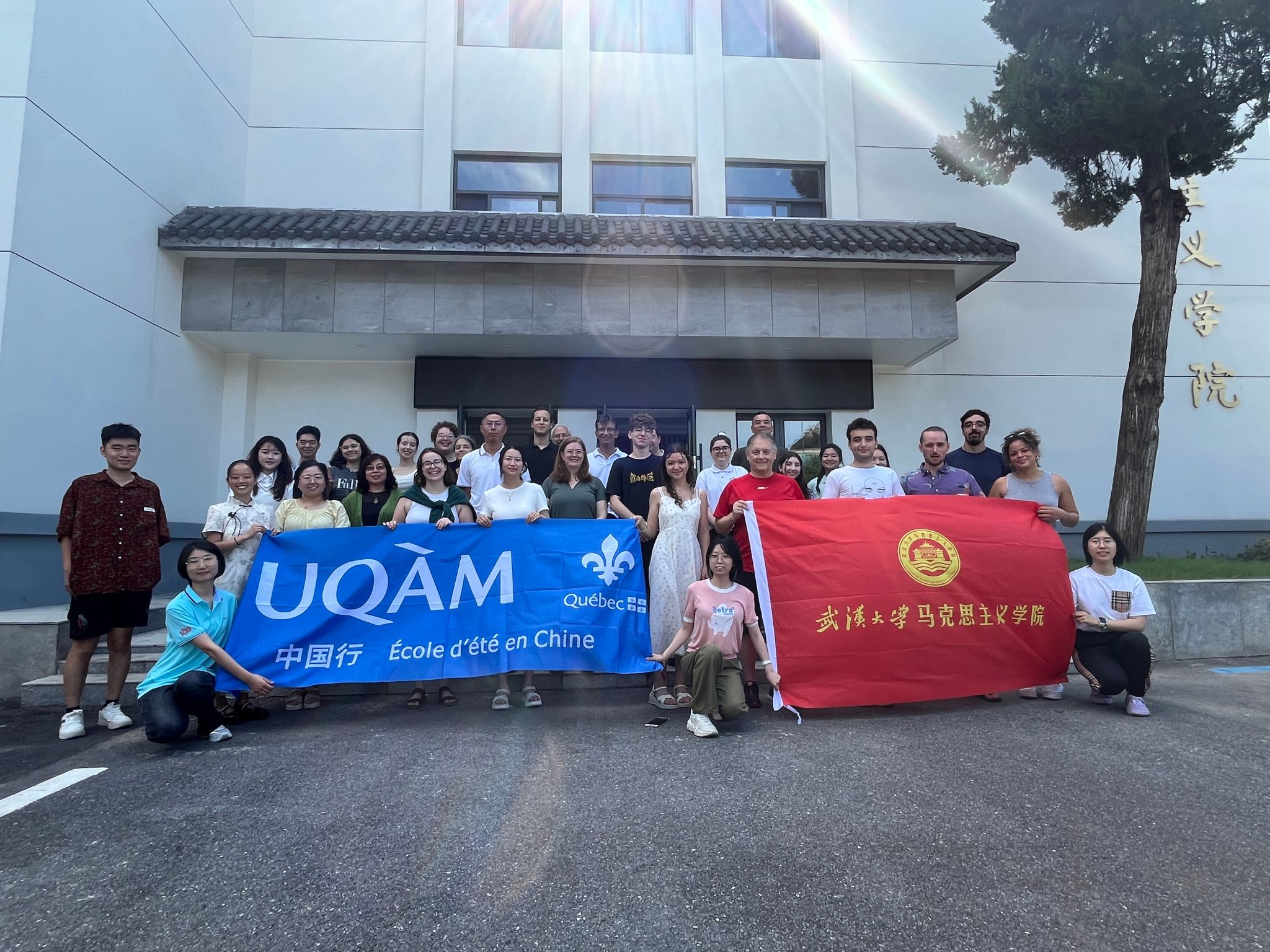 迎来了一批特殊的客人——来自魁北克大学的师生代表团,双方在学院202会议室举行了开班仪式。魁北克大学孙敏(Min Sun)老师、聂鉴冰老师,武大马院温权教授、燕唯佳老师,以及魁北克大学的26名学生和马院的志愿者们参与了仪式。温权教授代表学院向他们表示了最诚挚的欢迎。志愿者们以饱满的热情进行了自我介绍,不仅展现了个人风采,更表达了对未来几天将为来宾们带来的精彩访学体验的期待。随着开幕式的圆满结束,来访师生与马院的老师们以及热情的志愿者们一同留下了珍贵的合影,纪念这一难忘时刻。