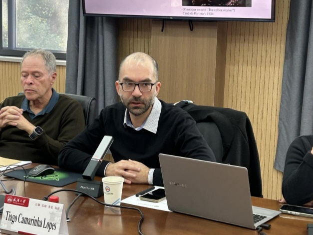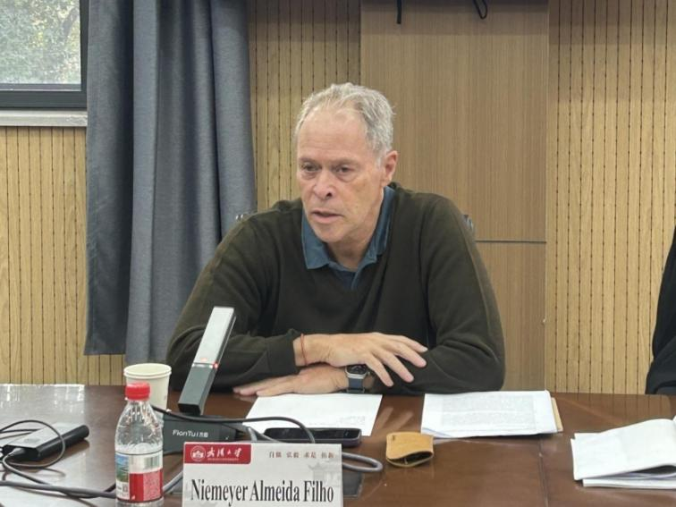12月16日上午,巴西乌伯兰迪亚联邦大学教授尼迈尔·艾梅达·菲罗(Niemeyer Almeida Filho)、瓦妮莎·佩特里·科雷亚(Vanessa Petrelli Corrêa)和戈亚斯联邦大学教授狄亚哥·卡马里尼亚·洛佩斯(Tiago Camarinha Lopes)、学者杰奎琳·维拉斯·博阿斯·塔尔加(Jaqueline Vilas Boas Talga),进行了以“世界变局下的文明交流互鉴”为主题的圆桌对话。四位专家围绕拉丁美洲社会主义可行性、全球多边体系、国际货币体系多极化演变趋势、中国互利共赢理念与中巴经贸合作等议题展开讨论,充分肯定了中国发展道路对发展中国家的启示意义和中拉文明交流互鉴的重要意义,并与现场师生就巴西发展道路、西方依附理论、中巴文明交流等问题进行了互动问答。