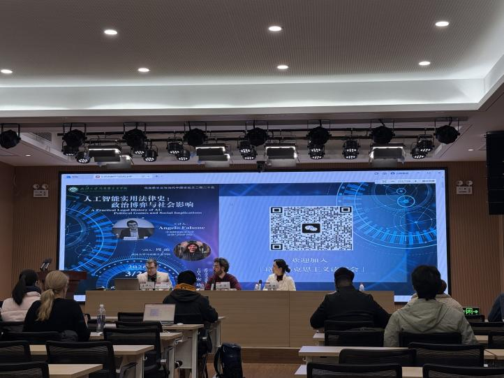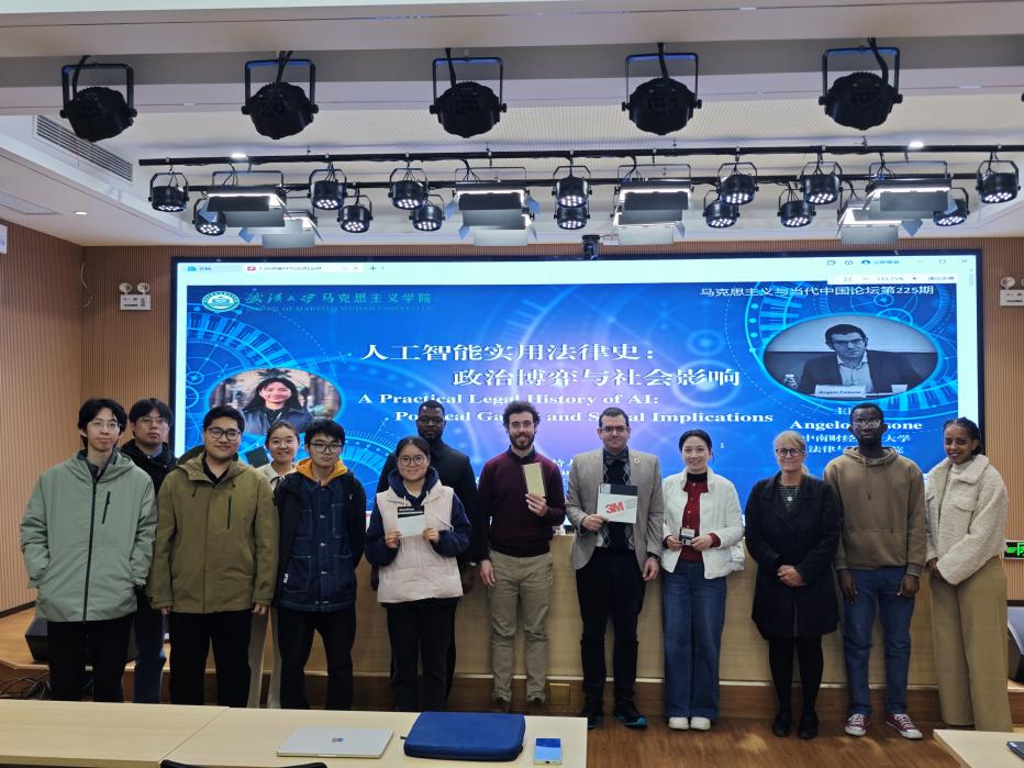 “马克思主义与当代中国论坛”第二百二十五讲“人工智能实用法律史:政治博弈与社会影响”在学院报告厅成功举办。中南财经政法大学法律与经济学院讲师Angelo Falsone应邀作专题讲座,讲座由成人直播
