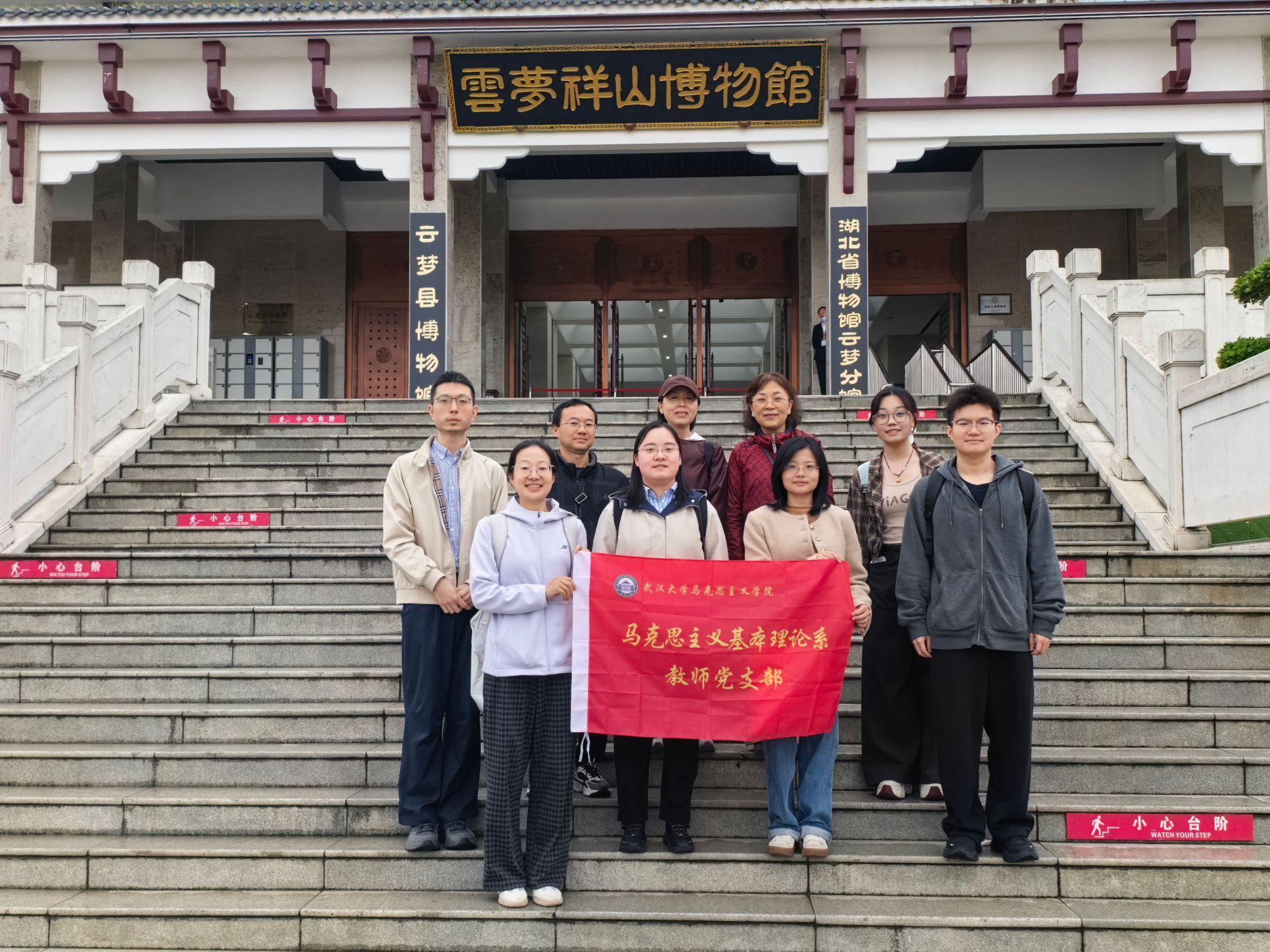 为深入学习贯彻习近平文化思想,坚定文化自信、赓续中华文脉,近日,马克思主义基本理论系教师党支部联合硕士2502班党支部,赴云梦祥山博物馆开展“寻脉云梦古泽,感悟中华文明”主题党日暨实践研学活动。党员们走进历史现场,在文物遗存中触摸文明脉络、感悟文化根魂,汲取传承发展中华文明的精神力量。