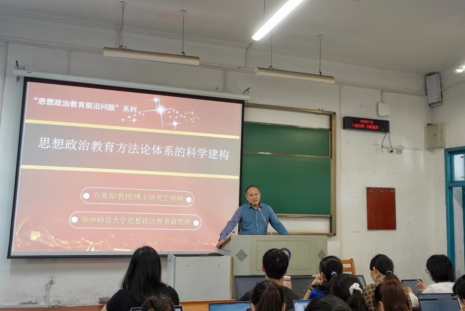 院长、博士生导师万美容教授应邀为我院师生作题为“思想政治教育方法论体系的科学建构”的专题学术讲座,讲座由我院项久雨教授主持,我院部分老师、部分硕士生和博士生以及全体21级本科生到场聆听,现场座无虚席。