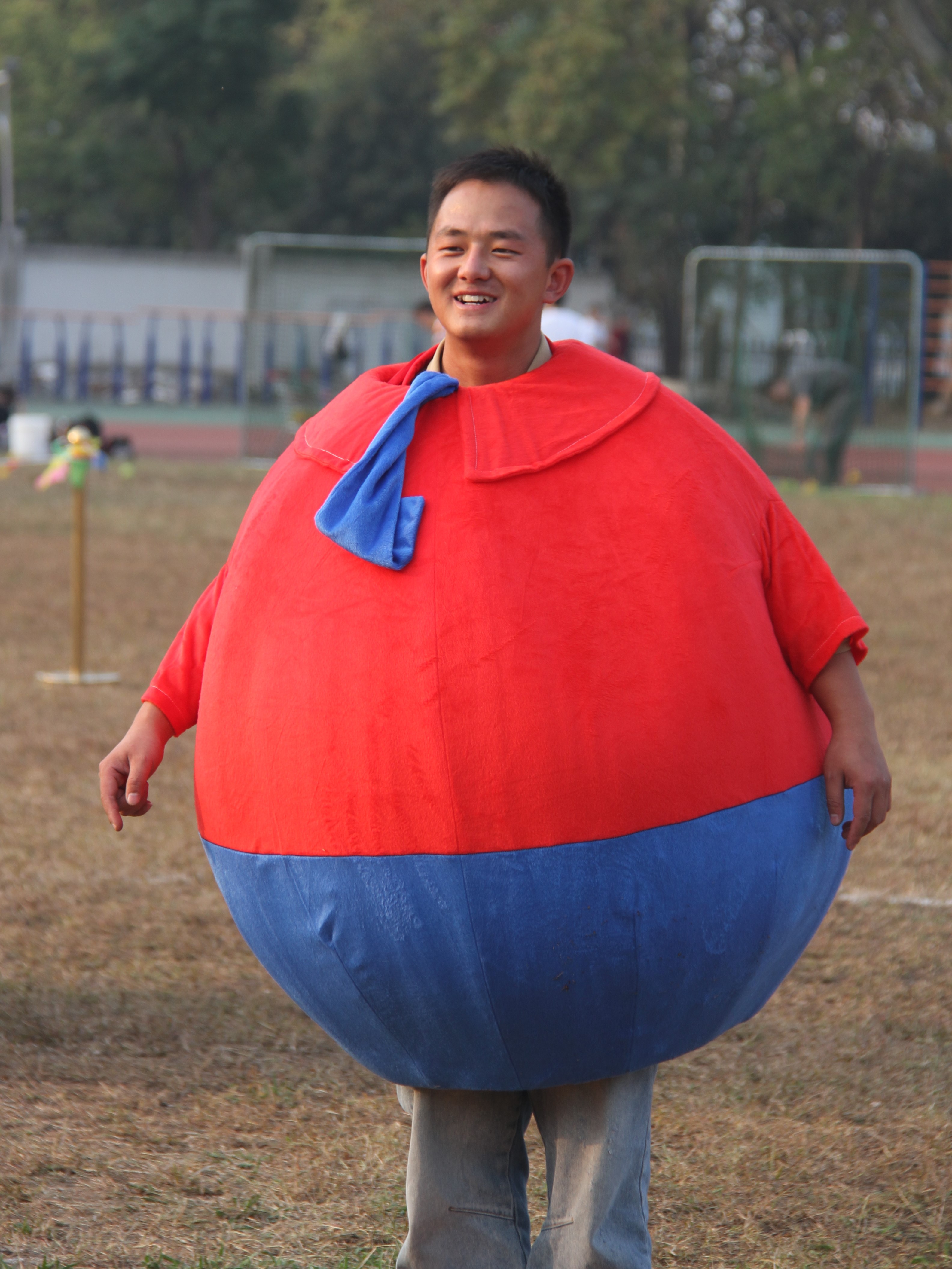 第六个项目是奔跑的小巨人。指压板赛道两端各有四名队员,两端的队员穿上小巨人服装同时出发,到中点击掌后返回各自起点,将服装传递给下一位队员,以此类推,最终用时较短的队伍获胜。