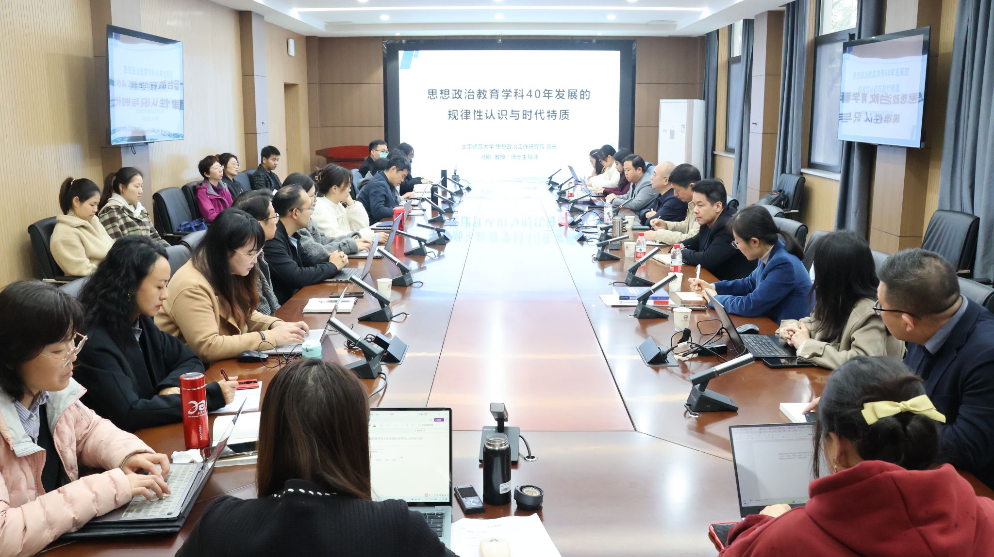 3月18日,北京师范大学思想政治工作研究院院长、博士生导师冯刚教授受邀做客“马克思主义与当代中国论坛”第207期,作“思想政治教育学科40年发展的规律性认识与时代特质”专题报告。学院佘双好教授主持报告会,骆郁廷教授、杨威教授等40余名师生代表参加本次活动。