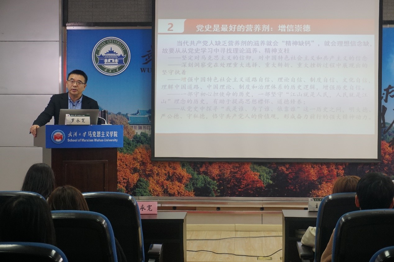 党委书记、博士生导师罗永宽教授应邀做了题为《学深悟透百年党史的门径与取法》的讲座。本次讲座为“学百年党史、担复兴大任”系列专题讲座的第一讲。学院学生入党积极分子、学生党员及部分教师参加,学院学生党总支王璐主持。